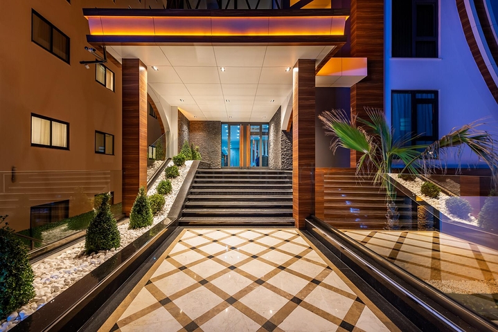 Комплекс находится на закрытой территорией, общей площадью 1902 м2. В бесплатном пользовании жильцов будет представлена вся современная отельная инфраструктура. Летний плавательный бассейн, солнечная терраса с шезлонгами, красивая зеленая территория с экзотическими деревнями, прекрасная SPA зона с сауной, массажными комнатами и конечно же зимним бассейном с подогревом. Проживать постоянно или отдыхать в этом комплексе будет комфортно в любое время года.