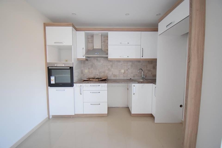 Квартира просторная 95 кв.м., зал, совмещенный с кухней, однако, кухня визуально отделена от основной зоны гостиной. В квартире установлен кухонный гарнитур, плита, вытяжка, духовка. Кухонная мебель нейтрального белого цвета с обрамлением приятного орехового цвета. Выход на балкон со стороны зоны гостиной. В зале установлены большие панорамные окна из двойного стеклопакета, защищающего от шума и пыли. Каждая комната стандартной прямоугольной формы, просторные спальни, позволяющие расположить любую мебель. В коридоре установлен шкаф для одежды. Дом полностью газифицирован. В подвальном помещении оборудована сауна и фитнес. Айдат составляет 20 евро.