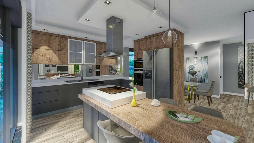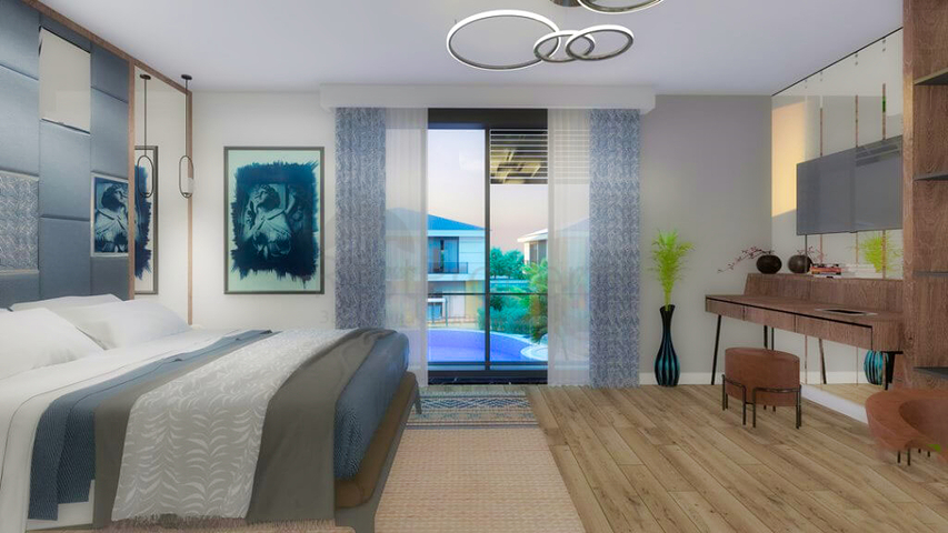 В комплексе предусмотрено 7 двух этажных вилл. Все виллы планировкой 5+1, общая площадь 290m² . Планировка предусматривает гостиную с кухонной зоной, 5 спальних, 6 ванные комнат и 6 балконов. Установлена бытовая техника фирмы Franke, подготовлено оборудование для подключения газового отопления, во всех виллах уже установлена система теплых полов.