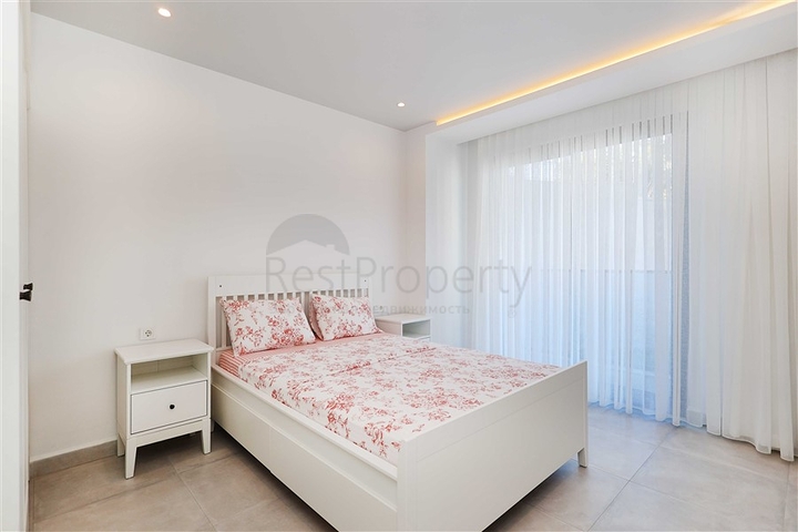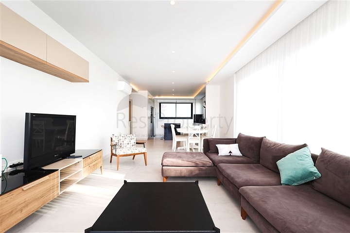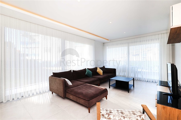 Планировка квартиры продумана для удобной жизни и включает просторную гостиную с кухней открытого типа, четыре спальни, три ванные комнаты, два балкона и функциональные жилые зоны на двух уровнях. Квартира полностью меблирована и оснащена бытовой техникой. Кухня оборудована гарнитуром с гранитной рабочей поверхностью, напольное покрытие выполнено из керамической плитки, ванные комнаты оснащены душевыми кабинами. Для поддержания комфортного климата установлена система кондиционирования.