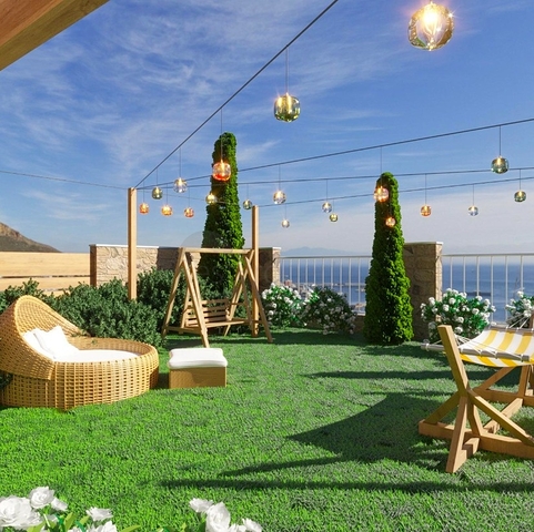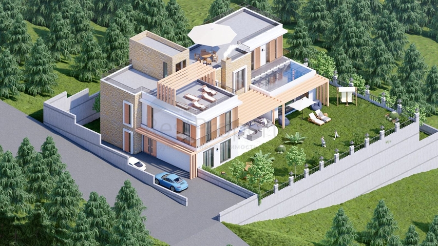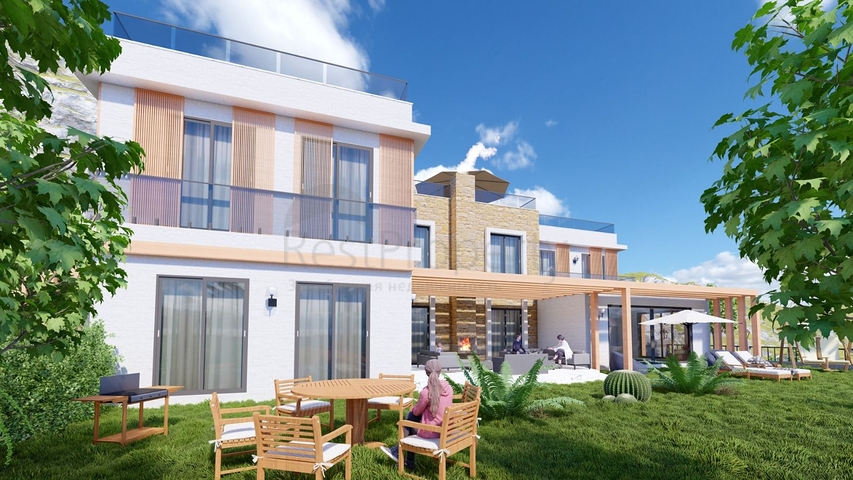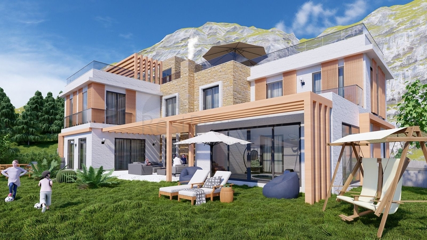 На участке предусмотрена развитая инфраструктура для комфортной жизни: частная парковка на 4 автомобиля, детская игровая зона, зона барбекю и отдыха на свежем воздухе, закрытая SPA-зона с баром, подогреваемый бассейн, турецкий хамам, сауна. Дополнительно предусмотрена возможность строительства отдельных апартаментов 1+1 для персонала с отдельным входом.