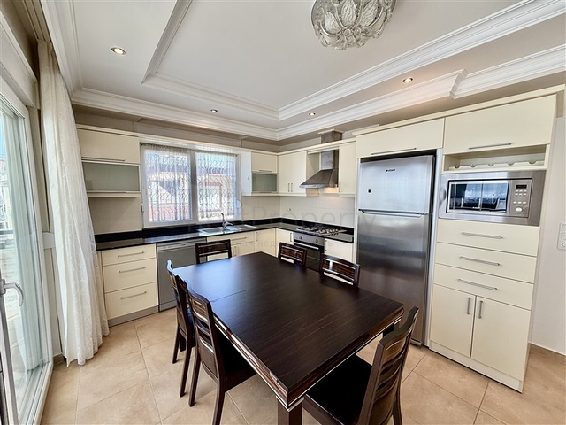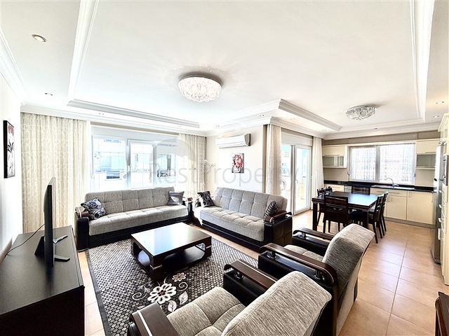 Просторный пентхаус формата 3+1 площадью 150 м² расположен на 4 этаже и ориентирован на солнечную южную сторону. В квартире два балкона, два санузла с душевыми кабинами, установлена вся необходимая мебель и бытовая техника, напольное покрытие — плитка, кухня выполнена с гранитной столешницей, отопление — кондиционеры и система тёплого пола в санузлах.