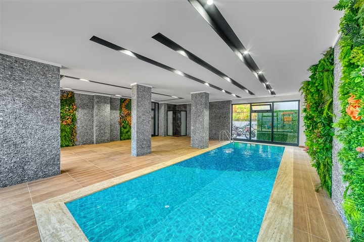 Предлагается двухкомнатная квартира 1+1 общей площадью 54 м², расположенная на втором этаже современного жилого дома. Планировка включает гостиную с кухней открытого типа, спальню, ванную комнату с душевой кабиной, санузел и балкон. В отделке использованы практичные и качественные материалы: гранитная столешница на кухне, напольное покрытие из керамической плитки. Установлена система кондиционирования. Квартира светлая, с удобной планировкой, подходит для комфортного проживания.