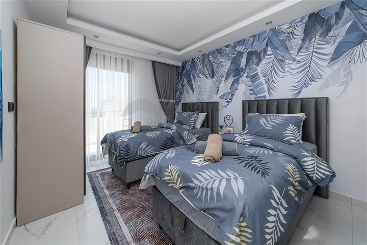 Предлагается пентхаус планировки 2+1 общей площадью 110 м², расположенный на четвёртом этаже современного жилого дома в районе Махмутлар. Квартира отличается продуманной планировкой: гостиная с кухонной зоной, две спальни, два санузла и дополнительный гостевой туалет, балкон и терраса. Объект полностью меблирован, укомплектован бытовой техникой, установлены кондиционеры. В кухне использованы гранитные столешницы, в ванных комнатах установлены душевые кабины, напольное покрытие выполнено из керамической плитки.