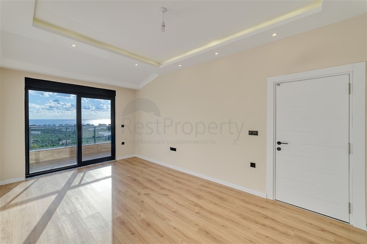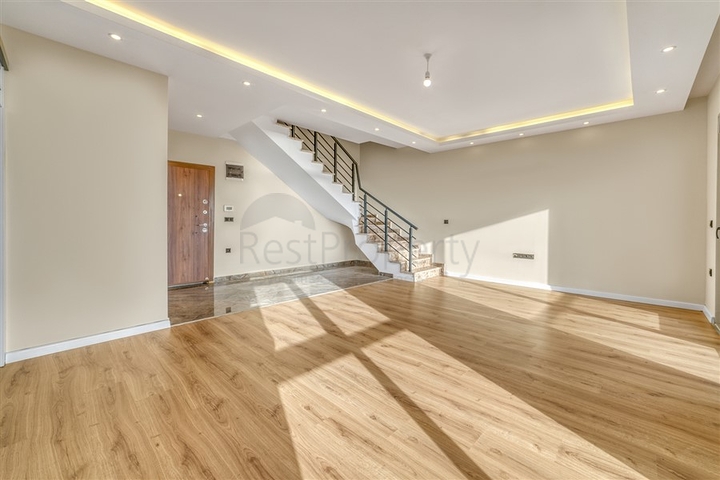 Предлагается пентхаус формата 3+1, расположенный на 4 этаже жилого здания. Общая площадь — 130 м². Планировка включает просторную гостиную с кухонной зоной, три отдельные спальни, три ванные комнаты, террасу и два балкона. В отделке использованы практичные материалы, напольное покрытие — плитка, кухня с гранитной рабочей поверхностью, ванные комнаты оборудованы душевыми кабинами. Установлены кондиционеры, подключены интернет и телевидение.