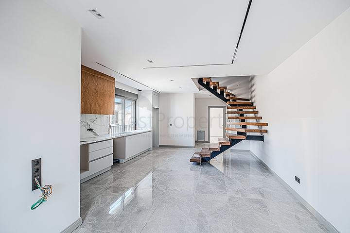 Предлагается современный двухуровневый пентхаус планировки 3+1 в одном из популярных районов Аланьи — Оба. Квартира расположена на верхнем этаже нового четырехэтажного здания и отличается продуманной планировкой и качественной отделкой. Общая площадь составляет 135 м².