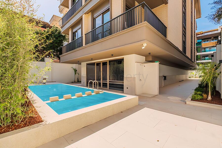 Квартира находится всего в 300 метрах от моря. В жилом комплексе предусмотрена инфраструктура для комфортного проживания: открытый бассейн, детский бассейн, сауна, паровая комната, фитнес-зал, детская игровая площадка, игровая комната, зеленый сад, зона барбекю, интернет, телевидение, система видеонаблюдения.