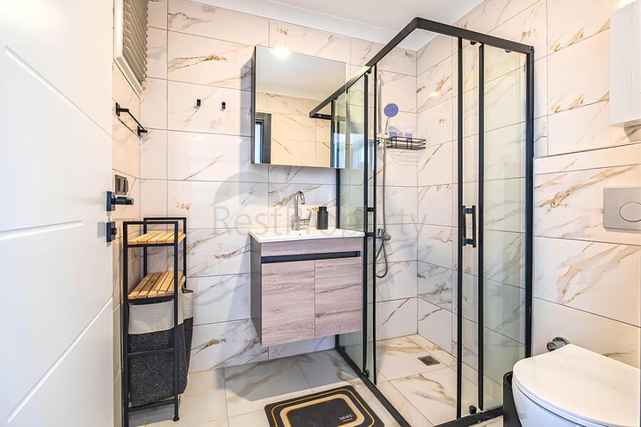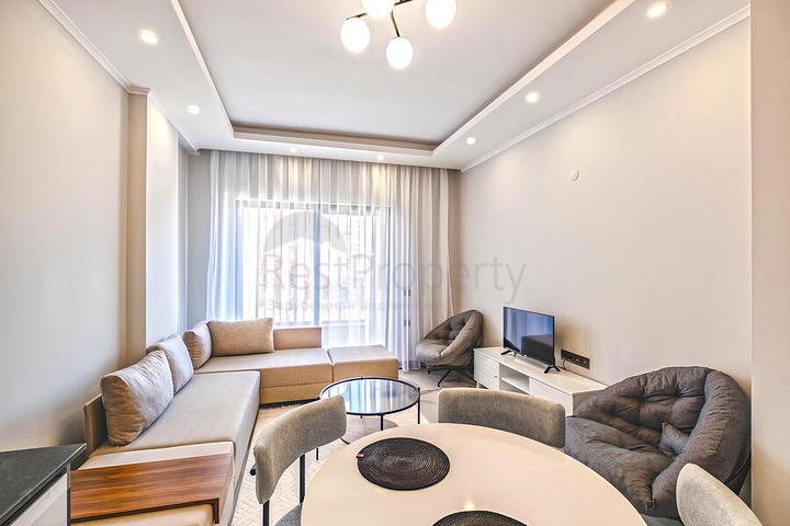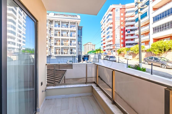 Предлагаются стильные апартаменты формата 1+1 площадью 64 м², расположенные в современном жилом комплексе всего в 2 км от моря. Квартира находится на 1 этаже и полностью укомплектована мебелью и бытовой техникой — готова к комфортному проживанию.