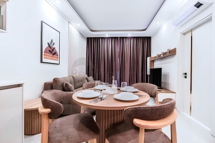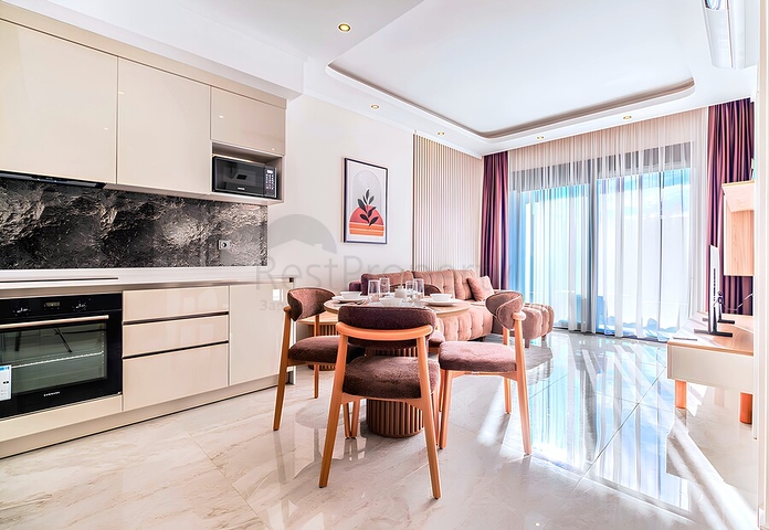 В аренду предлагается стильная и полностью меблированная квартира формата 1+1 площадью 52 м², расположенная на первом этаже нового жилого проекта. Светлое пространство, продуманная планировка, частичный вид на море и комфортный балкон создают приятные условия для проживания. Квартира оснащена бытовой техникой, кондиционером, гранитной кухонной столешницей, душевой кабиной, качественной отделкой и напольным покрытием из плитки.