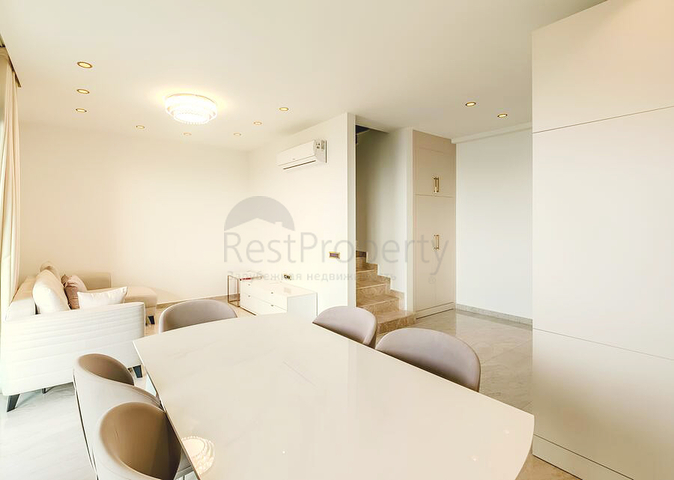 Предлагается просторный двухуровневый пентхаус формата 2+1, расположенный на последнем этаже современного жилого комплекса в Тосмуре, всего в 200 метрах от моря. Площадь апартаментов составляет 100 м². Внутреннее пространство продумано до мелочей: светлая гостиная, объединённая с кухней, две уютные спальни, две ванные комнаты с душевыми кабинами, балкон и большая терраса с видом на море. Квартира полностью меблирована, оснащена современной бытовой техникой, системой кондиционирования и подогревом пола.