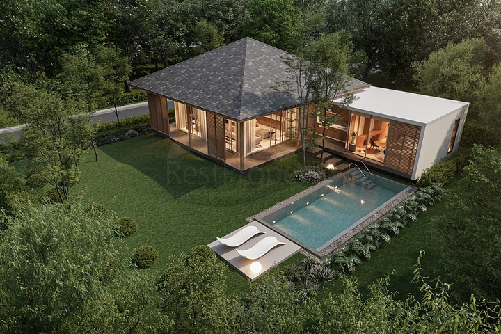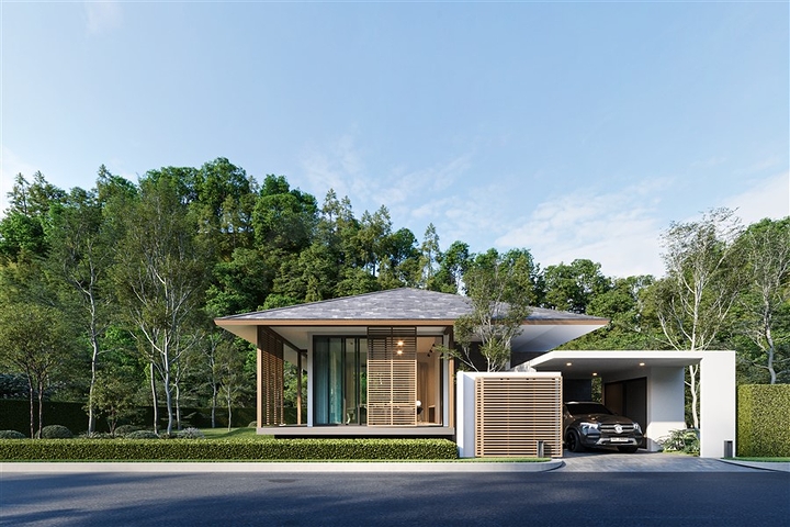 Архитектурная концепция проекта объединяет современный стиль и природные материалы. Большие панорамные окна наполняют виллы естественным светом, а продуманная планировка создаёт ощущение лёгкости и комфорта. Просторные жилые зоны плавно переходят на террасы и зоны отдыха, позволяя наслаждаться тропическим климатом Пхукета.