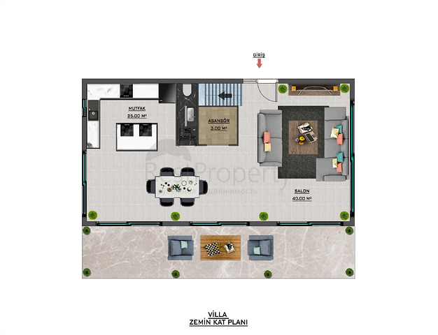Вилла состоит из трех этажей и находится в 150 м от моря и в 1 200 м от центра. Вилла с развитой инфраструктурой, что делает отдых и проживание на данной вилле комфортным. Здесь имеется собственный бассейн с зоной для отдыха, сауна, хамам, фитнес, детская игровая площадка, барбекю, беседка для отдыха, лифт, система видеонаблюдения. Окончание строительства- 2023 год.