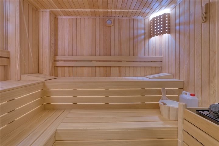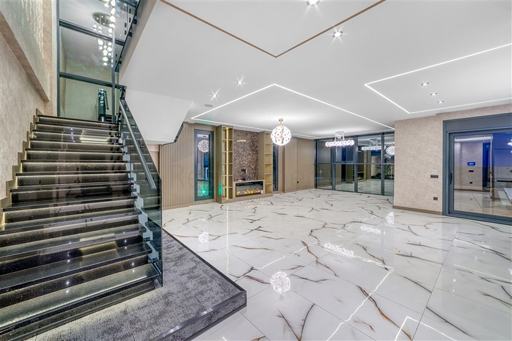 На территории виллы предусмотрен частный бассейн, детский бассейн, сауна, джакузи, зелёный сад, зона барбекю, беседки, открытая и крытая парковка, а также система видеонаблюдения и генератор. Внутренняя отделка выполнена с использованием качественных материалов: гранитная столешница на кухне, полы с керамическим покрытием, комбинированная система отопления — климатическая и с подогревом полов.