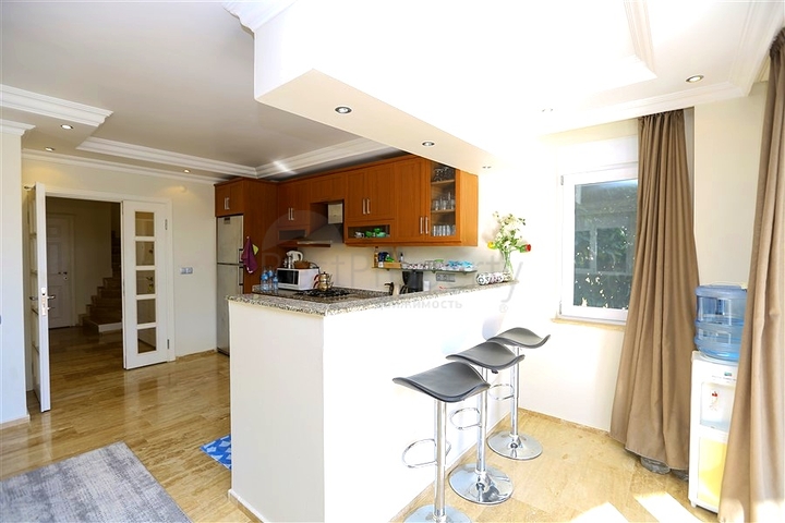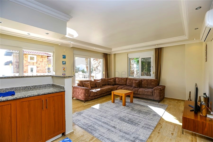 Предлагается вилла планировки 3+1 с продуманной архитектурой и ухоженной территорией. Общая площадь составляет 179 м². В доме просторная гостиная с кухонной зоной, три спальни, две ванные комнаты и дополнительный санузел. Вилла полностью меблирована и укомплектована бытовой техникой, установлены кондиционеры. Из гостиной есть выход на террасу, также предусмотрен балкон. Планировка удобна для постоянного проживания, все помещения светлые и функциональные.