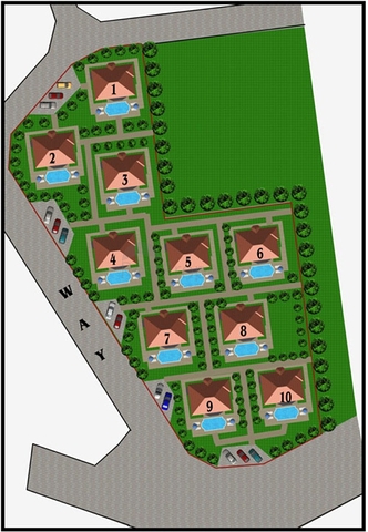 Каждая вилла имеет собственную территорию 400 кв м, на которой расположены личный бассейн и личный гараж.
