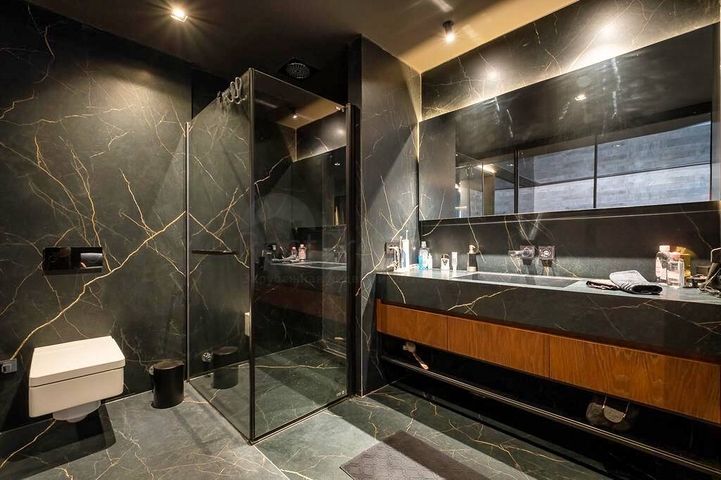Вилла планировкой 3+2 расположена в 2 км от моря. Планировка апартаментов включает в себя: две гостиные американского типа, три спальни, три ванные комнаты, балкон и просторную террасу. Ванная комната с душевой кабиной выложены плиткой, в гостиной и комнате напольное покрытие ламинат и паркет. На территории комплекса вилл расположен бассейн для взрослых и детей, открытая парковка, фитнес центр, хамам, сауна, прогулочные дорожки, джакузи, зона барбекю.