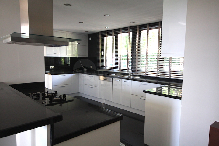 1 этаж – гостиная, кухня, столовая и терраса с зимним садом, балкон, гардеробная и туалет, комната для обслуживающего персонала;
