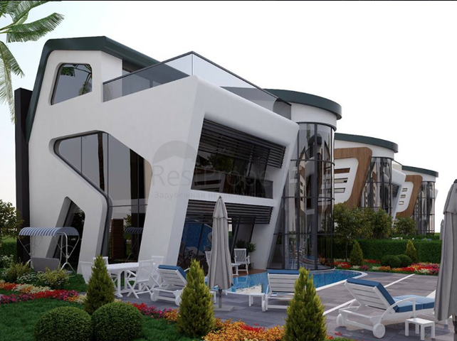 4 виллы 6+1 общей площадью 380 м2. На цокольном этаже расположена сауна, фитнес зал, кинотеатр, крытая парковка. На первом этаже отдельная кухня, гостиная, санузел. На втором этаже 3 спальни, 3 санузла. На третьем этаже 3 спальни, 2 санузла и терраса