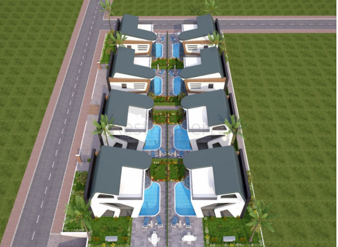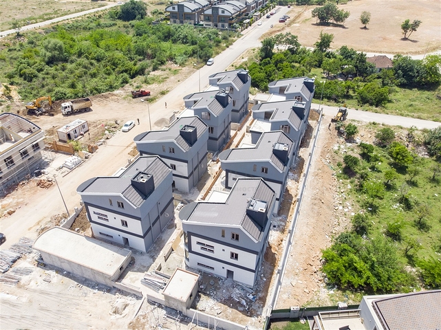 4 виллы 5+1, общей площадью 300 м2. На цокольном этаже расположена сауна, фитнес зал, кинотеатр, крытая парковка. На первом этаже отдельная кухня, гостиная, санузел. На втором этаже 3 спальни, 3 санузла. На треьтем этаже 2 спальни, 2 санузла и терраса