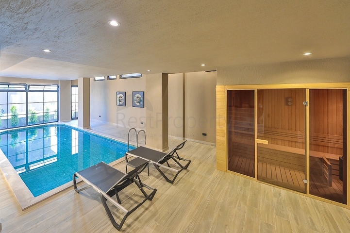 Для полного комфорта в доме есть крытый подогреваемый бассейн, сауна, хамам и система кондиционирования во всех комнатах. На территории расположена частная парковка и ухоженный сад, создающий атмосферу уединения и покоя.