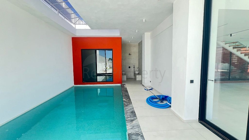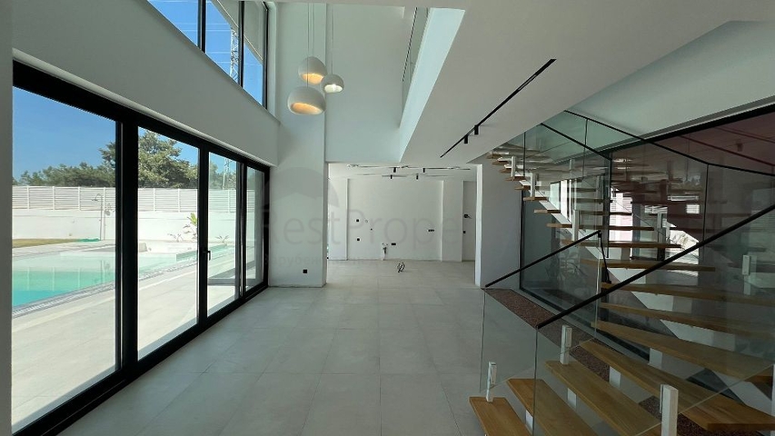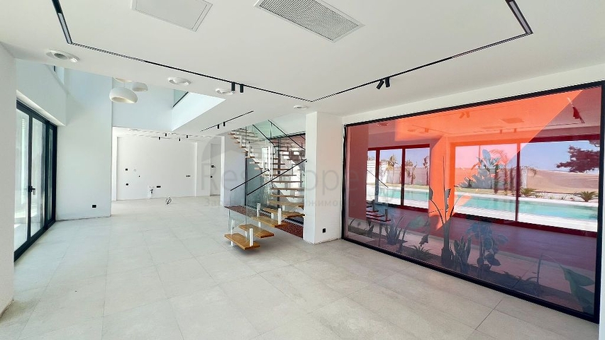 Внутреннее расположение включает просторную гостиную с кухонной зоной, пять светлых спален, три санузла, качественную встроенную кухню и балконы, откуда открываются приятные виды на окрестности. В отделке использованы современные материалы, а планировка идеально сочетает функциональность и комфорт.