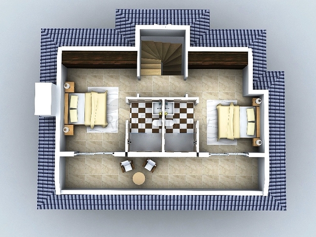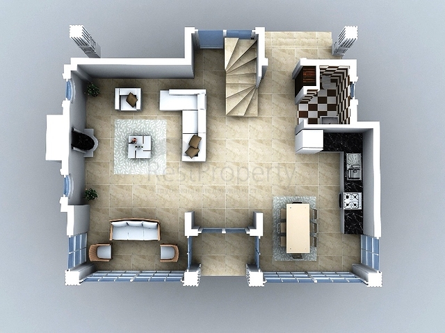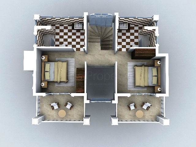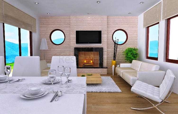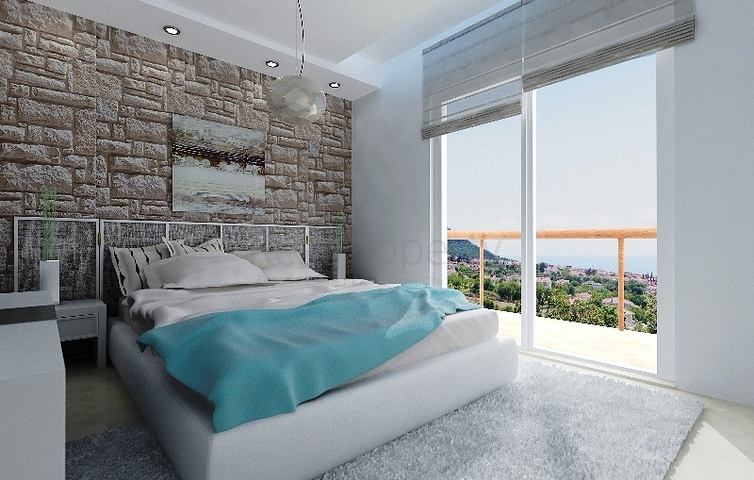 Дом планировкой 4+1 имеет на первом этаже гостиную-студию в американском стиле с обеденной зоной и зоной кухни. На втором и третьем этажах спальные комнаты с балконами. Общая площадь виллы 178 м².
